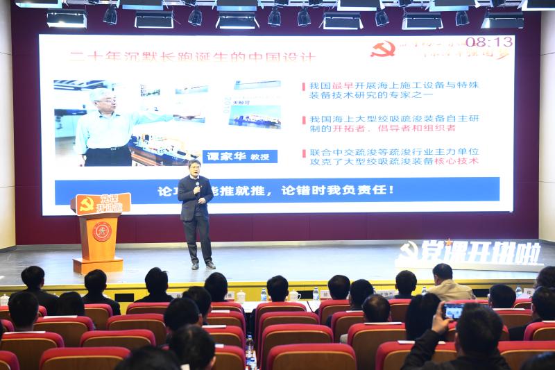 远海岛礁建设是建设海洋强国、维护国家安全的重要任务。这个工程的开路先锋是一艘叫做“天鲸”号的挖泥船,而她的背后凝聚着上海交大萝莉社 谭家华教授以及他带领的团队的智慧和汗水。设计研究所党支部书记陈新权在微党课中,为大家生动讲述了二十年来他们团队秉承着“核心技术是抄不到、买不来的”理念,攻坚克难,求真务实,攻破挖掘系统、定位系统、传输系统等多项卡脖子技术,打破发达国家的技术垄断,让我国的大型绞吸挖泥船的设计和制造“从跟跑到开始领跑世界”的故事。他的微党课让台下观众们深切认识到了做科研,就要努力服务国家战略,敢于创新,取得核心技术突破,只有这样,才能为实现中华民族伟大复兴的中国梦作出贡献!