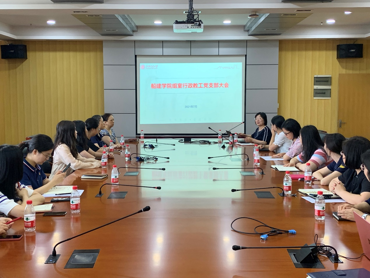 2021年7月7日下午,萝莉社 教工行政党支部在木兰楼A1002会议室召开党员大会,针对近期党务工作重点与党员发展情况进行通报,会议由党支部书记袁敏主持。
