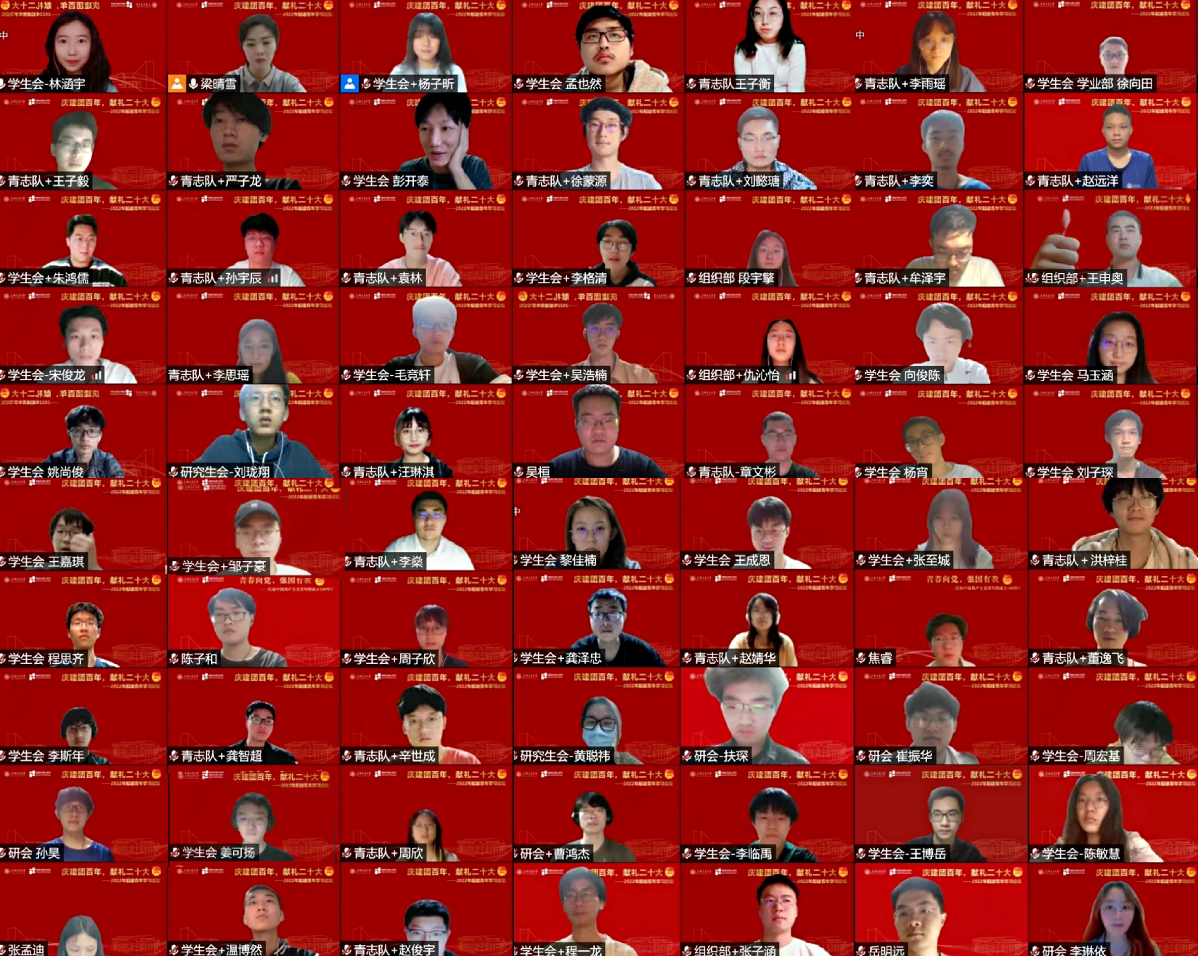 萝莉社 学生会主席团成员朱鸿儒带领参会同学们一同学习了习近平总书记在庆祝中国共产主义青年团成立100周年大会上的讲话,共同回顾了党领导下中国青年运动的百年历程。