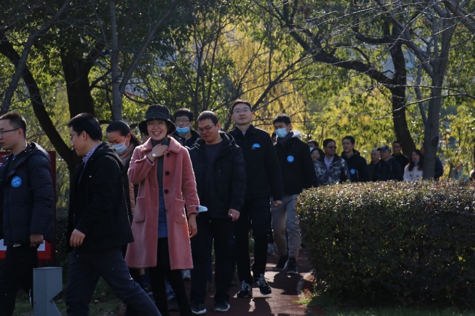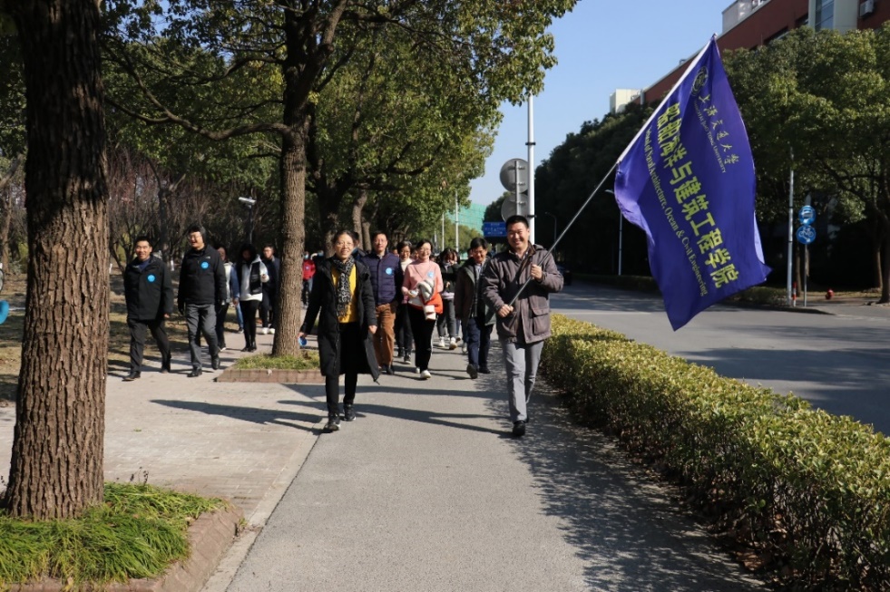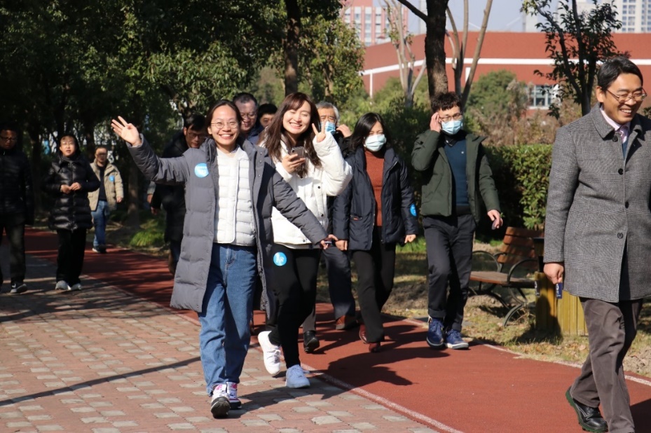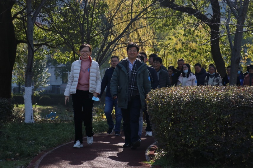 在健步走活动中,大家一边欣赏美丽的校园一边谈笑风生。在如此繁重的教学科研工作之余,参加活动既增进了同事情谊,又达到了健身放松的目的,增强了广大教工的归属感和凝聚力。