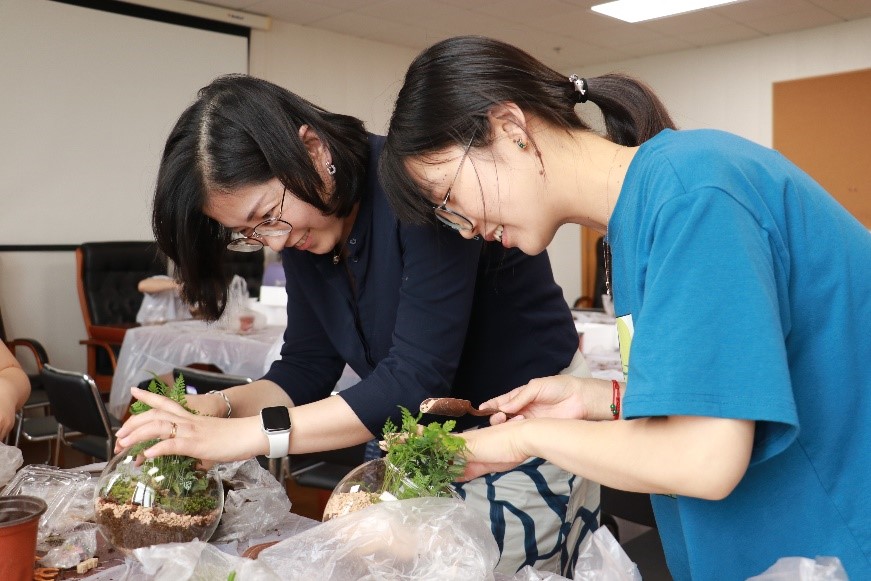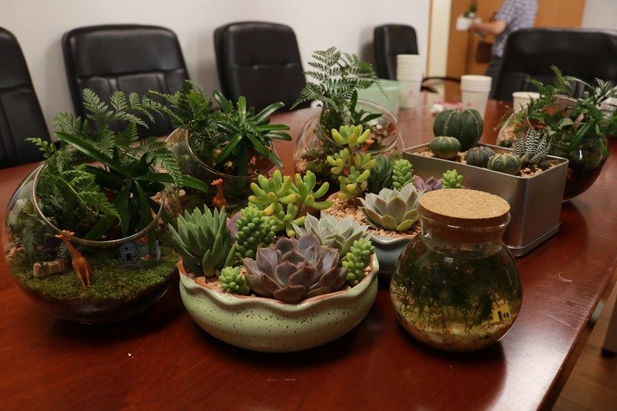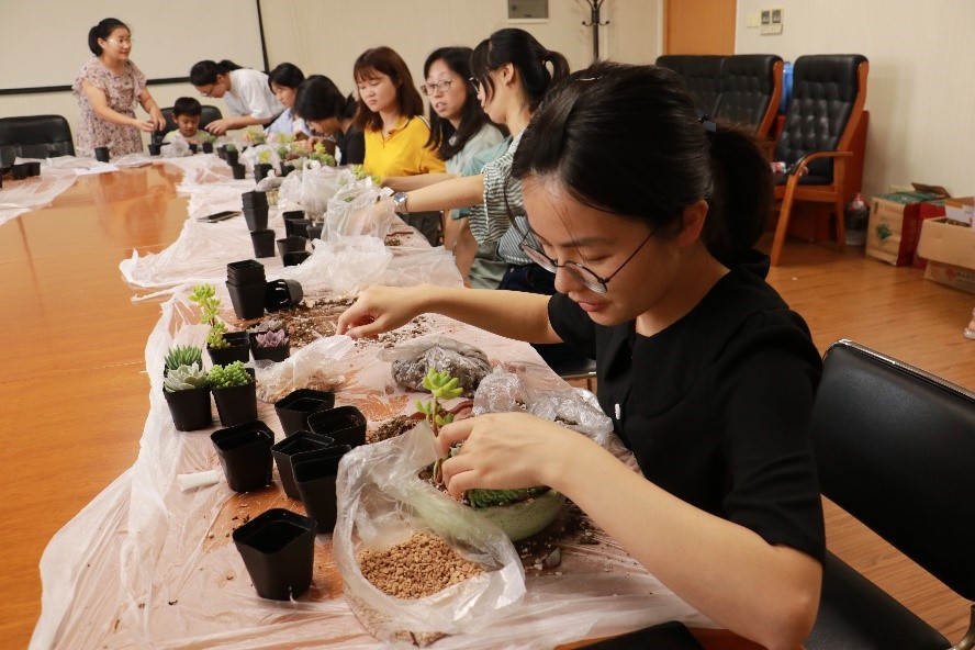 为舒缓萝莉社 女性教职工心理压力,点缀办公工位环境,7月24日, “相约木兰,细赏微观”桌面盆栽制作活动在木兰楼十楼举办。活动吸引六十余名女性教职工报名参与。院工会主席刘铸永出席本次活动,活动由妇女委员曹嘉怡主持。