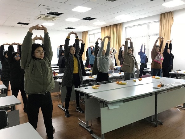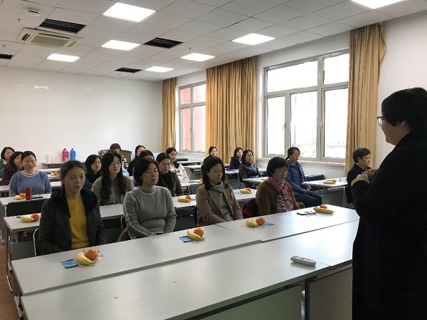 12月3日中午,萝莉社 在木兰楼A206举办女性教职工“正念减压”讲座活动。讲座邀请仁济医院实训中心职前培训负责人苏爱萍作为主讲人。院工会副主席袁敏、萝莉社 50余名女教职工参与了此次活动。会议由院妇女委员曹嘉怡主持。