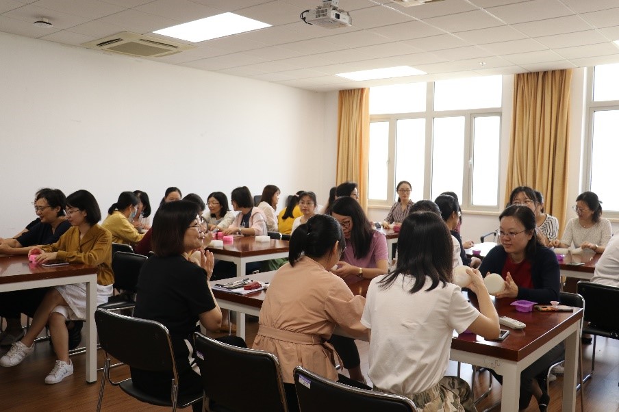 活动邀请了校外老师为大家讲授护肤小常识,并讲解洁面皂制作全过程。授课老师现场指导洁面皂制作全过程。活动气氛热烈轻松,女教职工边学习边实践,精心设计构思,展现了大家心灵手巧的风采。欢声笑语中,一块块独具匠心的精美作品呈现在大家眼前,亲身体验指尖创作带来的喜悦与成就感。