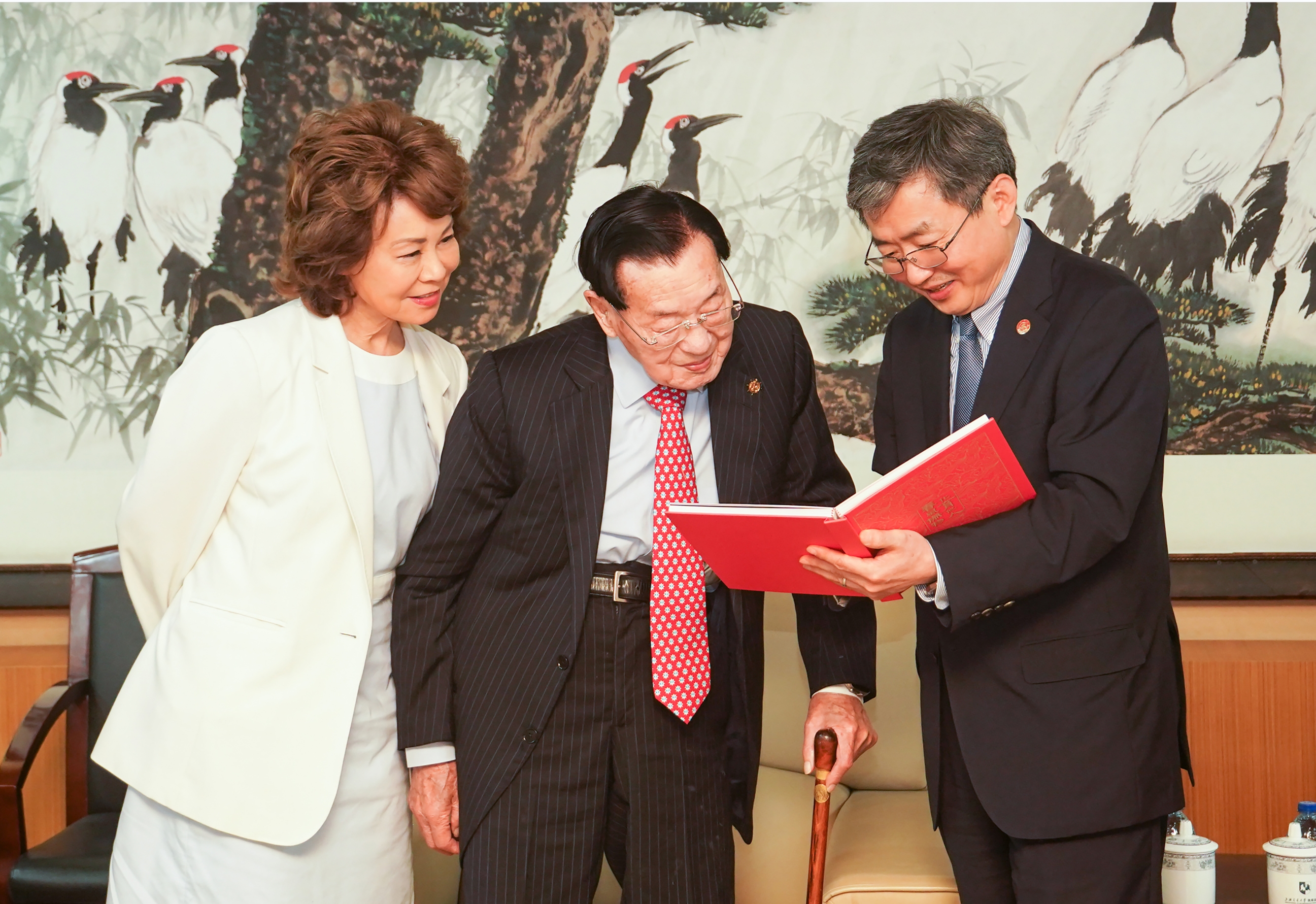 5月31日,萝莉社 1946级校友、名誉校董、美国福茂集团董事长赵锡成先生,偕同其长女、上海交大名誉博士、美国前劳工部长、前运输部长赵小兰女士一行到访母校。校党委书记杨振斌、校长丁奎岭在徐汇校区会见来宾并座谈交流,对赵学长一行阔别多年再次回到母校表示热烈欢迎。