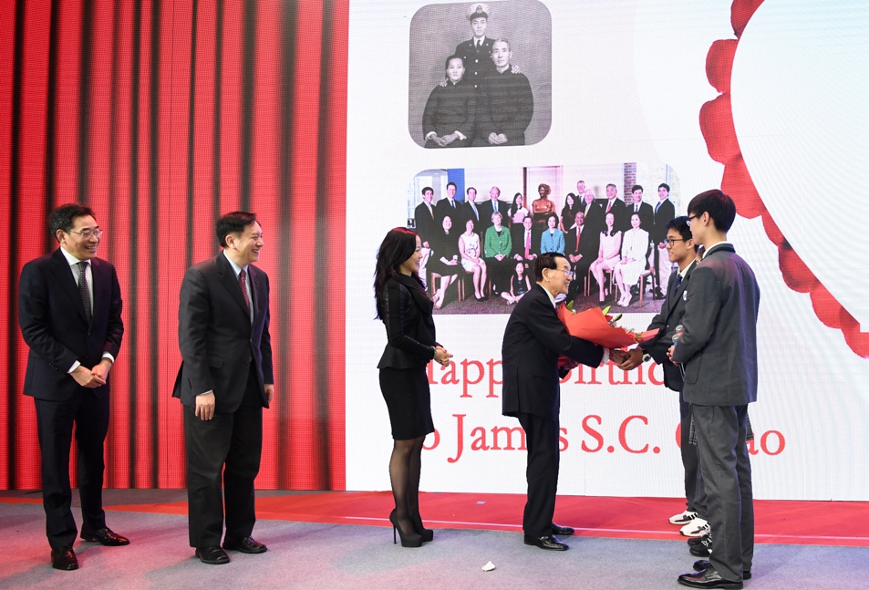 当天,距赵学长的九十岁生日仅有12天,活动现场为他齐唱生日歌,嘉定一中的同学们为赵学长献上了祝福的花束,全场共同祝愿赵学长身体健康,赵氏家族蓬勃发展。