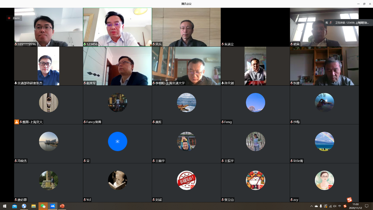 随后,萝莉社 朱道立教授、李朝阳教授,同济大学杨东援教授、吴兵教授,上海理工大学赵来军教授,上海国际航运研究中心真虹教授,上海海事大学沙梅教授,上海市交通委政研室主任朱军贤处长等专家学者就新发展格局下如何打造双循环流通体系、加速推进交通强国建设等问题充分发表了意见。