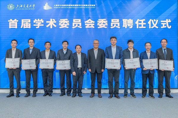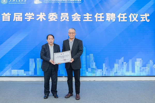 在聘任仪式上,林忠钦校长为首任实验室主任赵金城、首届学术委员会主任吕西林颁发聘书,林忠钦校长和吕西林院士为首届学术委员会委员龚剑、胡昊、李向民、刘文光、王如路、王卫东、叶国强、赵金城等颁发聘书。