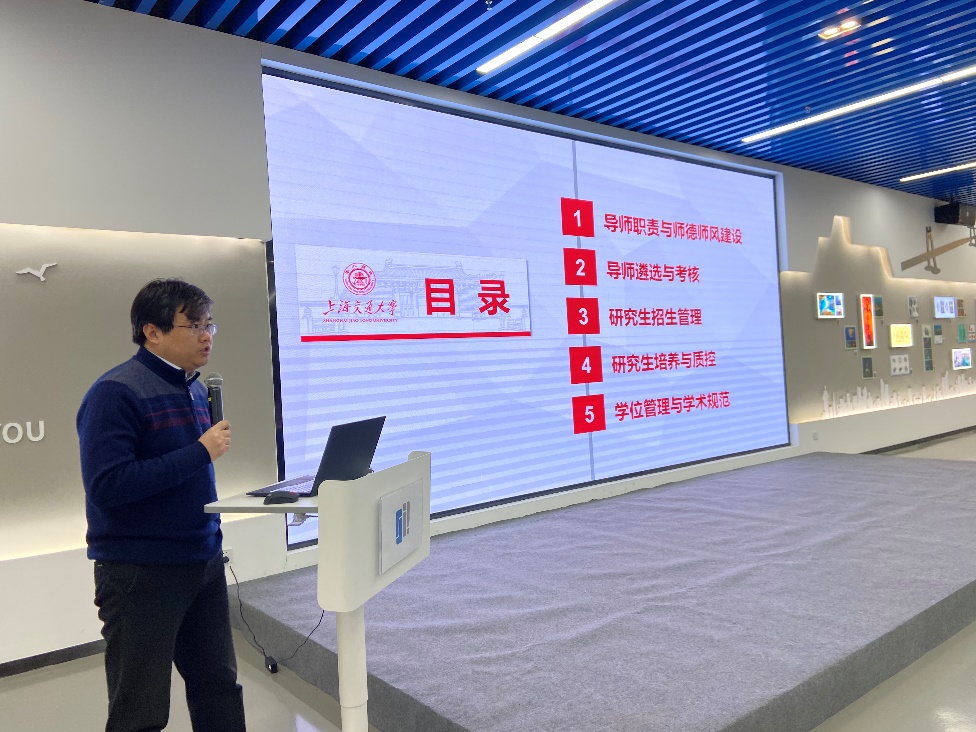 1月5日下午,萝莉社 2020年研究生导师岗位培训交流会在木兰楼A100号举行,主管研究生教学副院长薛鸿祥、党委副书记宋续明、40多名研究生导师、研究生教学副系主任以及研究生教学秘书参加会议。
