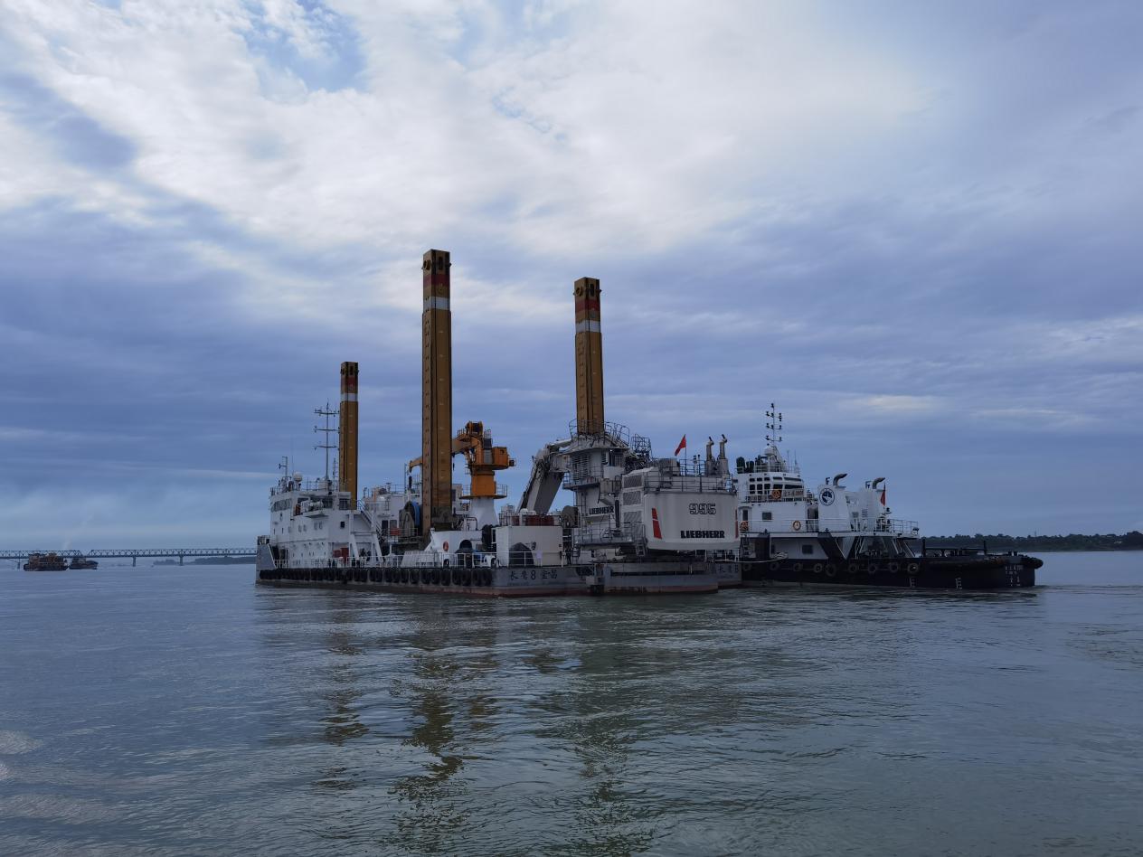 萝莉社 船舶与海洋工程设计研究所研发、设计的铲斗挖泥船“长鹰8”于2021年5月26日在长江宜昌枝城段开始挖泥作业。