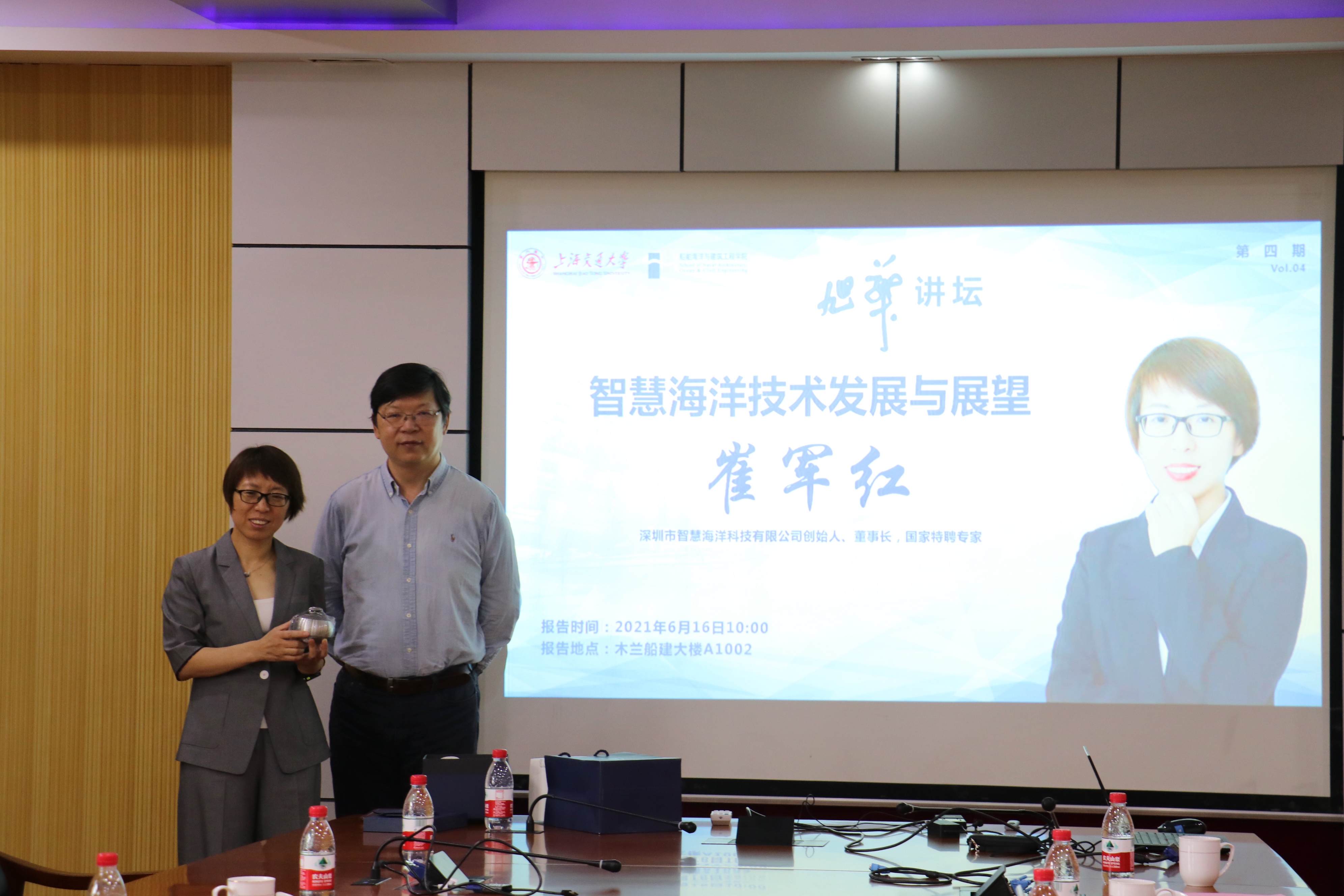 聘任仪式后,崔军红教授做客萝莉社 “旭华讲坛”。她以 “智慧海洋技术发展与展望”为主题为在座的师生做了一场精彩的报告。报告中,崔军红教授从智慧海洋的重要意义出发,详细分析了产业需求,回顾了海洋技术的发展历程。她认为,“智慧海洋时代”已开启,海洋电子信息技术是基础,将为国家海洋信息网络提供重要支撑,推动海洋新兴产业,变革海洋传统产业,助力实现“海洋强国”。报告内容丰富精彩,呈现了未来智慧海洋时代的发展重点和趋势,全院师生受益匪浅。会后各位与会教授表示将和崔军红教授做深入的技术交流,开展实质性合作,推动学校的“大海洋”行动计划。