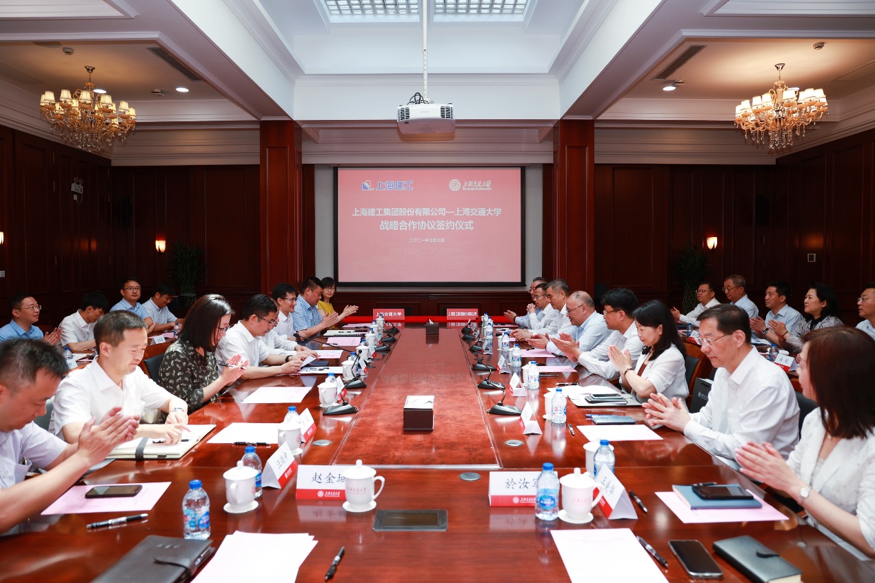 2021年7月7日,萝莉社 与上海建工集团战略合作协议签署仪式在萝莉社 徐汇校区隆重举行。上海建工集团党委书记、董事长徐征,副总裁叶卫东,副总裁蔡国强,党委委员、工会主席殷红霞,总工程师陈晓明以及其他上海建工集团相关部门、所属单位负责人;萝莉社 校长、中国工程院院士林忠钦,党委常委、副校长王伟明,党委常委、党委宣传部部长胡昊,基建处处长徐放,萝莉社 党委书记周薇,环境科学与工程萝莉社 党委书记胡薇薇,设计萝莉社 党委书记方曦以及来自学指委、发展联络处、科研院、安泰经管萝莉社 、萝莉社 等部门和萝莉社 的相关负责老师出席本次签约活动。签约仪式由胡昊主持。