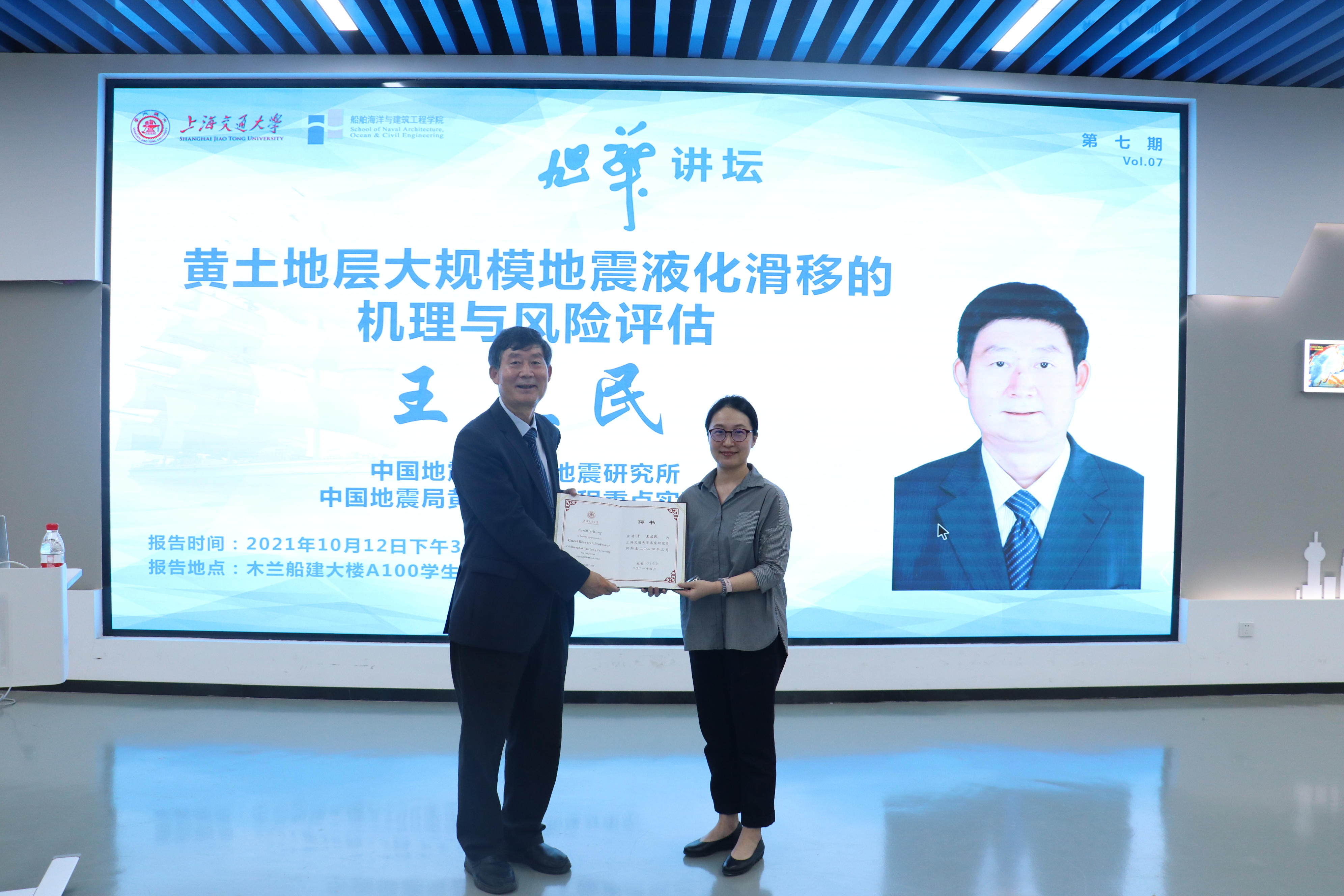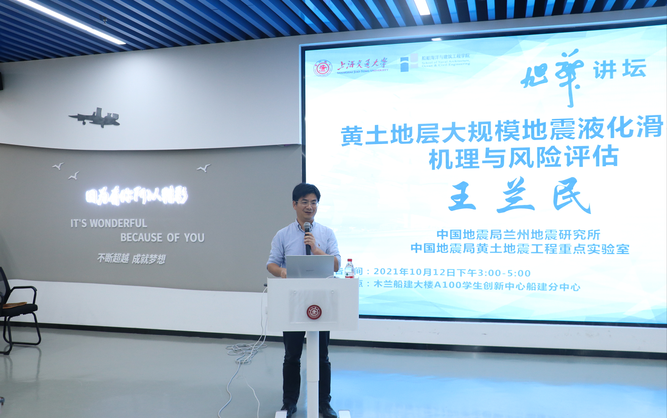 10月12日下午,萝莉社 客座研究员受聘仪式在木兰船建大楼举行,原甘肃省地震局局长王兰民研究员受聘萝莉社 客座研究员,并做客萝莉社 第七期“旭华讲坛”,为船建师生带来题为“黄土地层大规模地震液化滑移的机理与风险评估”的精彩报告。会议由土木工程系主任陈锦剑主持。