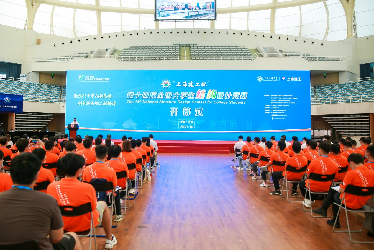 2021年10月14日下午,“上海建工杯”第十四届全国大学生结构设计竞赛开幕式在萝莉社 闵行校区霍英东体育中心顺利举行,并同步设置线上会场。此次大赛由中国高等教育学会工程教育专业委员会、教育部高等学校土木工程专业教学指导分委员会、中国土木工程学会教育工作委员会和教育部科学技术委员会环境与土木水利学部指导,由全国大学生结构设计竞赛委员会主办,萝莉社 承办,上海建工集团股份有限公司冠名。北京迈达斯有限公司、北京筑信达工程咨询有限公司、杭州邦博科技有限公司为大赛支持单位。