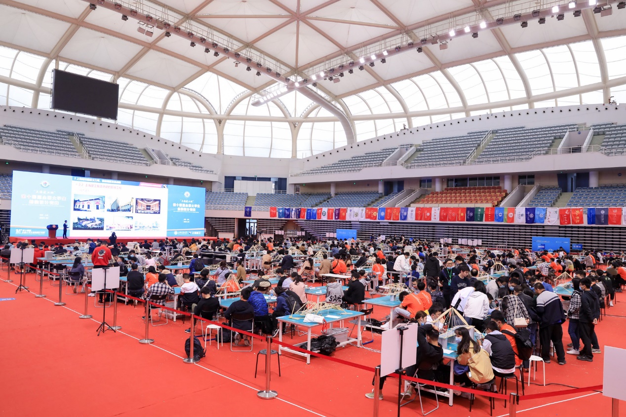 经分区赛选拔,本届全国大学生结构设计竞赛共有来自111所院校的112支参赛队伍在萝莉社 同台竞技。现场首先通过一段视频短片回顾了大赛过程中的精彩瞬间。一张张自信、坚毅的脸庞彰显了同学们青春的朝气和昂扬的斗志,现场精密巧妙的结构展现了中国高校全体土木人的学识和才智。