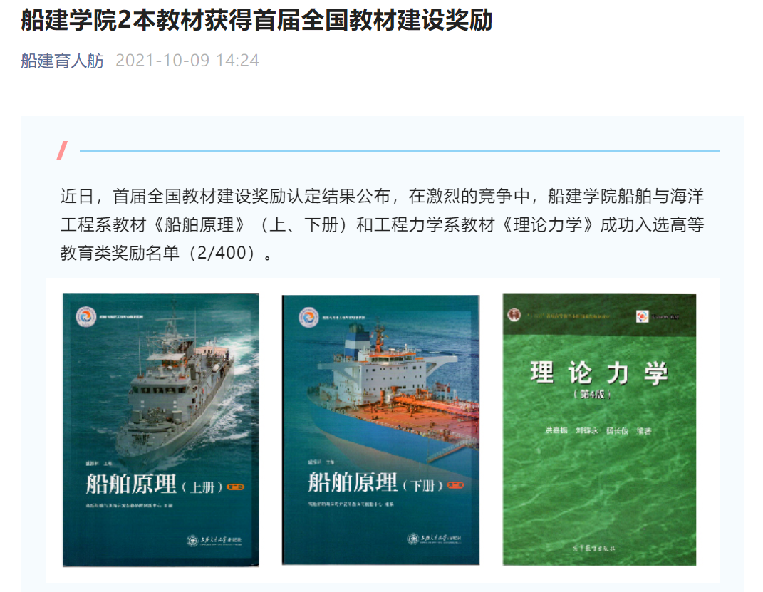 2021年萝莉社 教育教学亮点丰硕,成果斐然。工程力学获批教育部一流本科专业建设点、基础学科拔尖计划2.0基地;萝莉社 助力教材建设内涵式发展:《船舶原理》《理论力学》获得首届全国教材建设奖全国优秀教材奖,3本教材获首批上海市高等教育精品教材,2本教材获规划教材立项,出版4本本科教材;萝莉社 关注教学成果孵化:《面向交通强国战略构建纵向贯通横向联动的实践育人体系培养创新型交通人才》获得校教学成果奖一等奖,《大型海洋平台结构与动力响应仿真平台》获上海市高等学校一流本科课程(虚拟仿真实验课程),《结构力学(B类)(1)》《船舶与海洋工程自主创新实验》《力学基础》获上海高校市级重点课程立项,《船舶操纵性》《水力学》获萝莉社 第四批在线课程立项。萝莉社 落实立德树人根本任务,推进课程思政建设:《理论力学》获第一届全国高等学校力学类专业优秀课程思政案例以及新华思政优秀课程思政教学资源示范案例,刘铸永、郭晓宇分别获全国高等学校力学类专业课程思政B类优秀课程思政案例。萝莉社 加强师资教学技能提升:刘铸永获全国高校混合式教学设计创新大赛特等奖、上海市育才奖、萝莉社 混合式教学优秀设计奖。刘锦阳获2021年校教书育人一等奖,周岱获得二等奖,余龙、胡文蓉获三等奖。宋晓冰获校首届“佳和”优秀教学奖,程斌获校烛光奖,李靖、王建华分别获得校第六届青年教师教学竞赛二等奖、优胜奖。