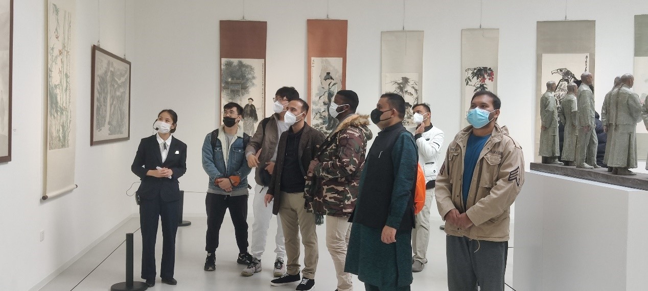 在讲解学习后,留学生们自行参观馆内展品。在一幅幅精美的艺术作品前,留学生们频频驻足,或拍照留念、或交流体会,感叹于其中蕴含的中华传统文化之美。