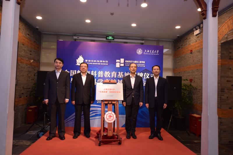 何建中、徐祖远、陈馨、张安胜为萝莉社 全国航海科普教育基地揭牌。