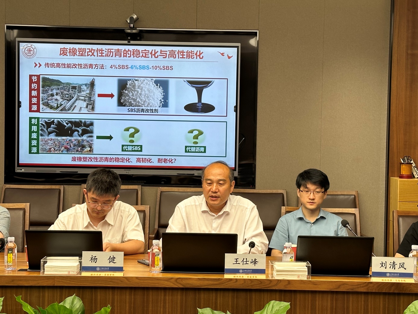 王仕峰对公路建筑材料/高分子加工技术领域中低碳高分子路面进行了分享。他围绕着沥青延寿、低碳建造等主题,介绍了废橡塑改性沥青公路工程中的应用。
