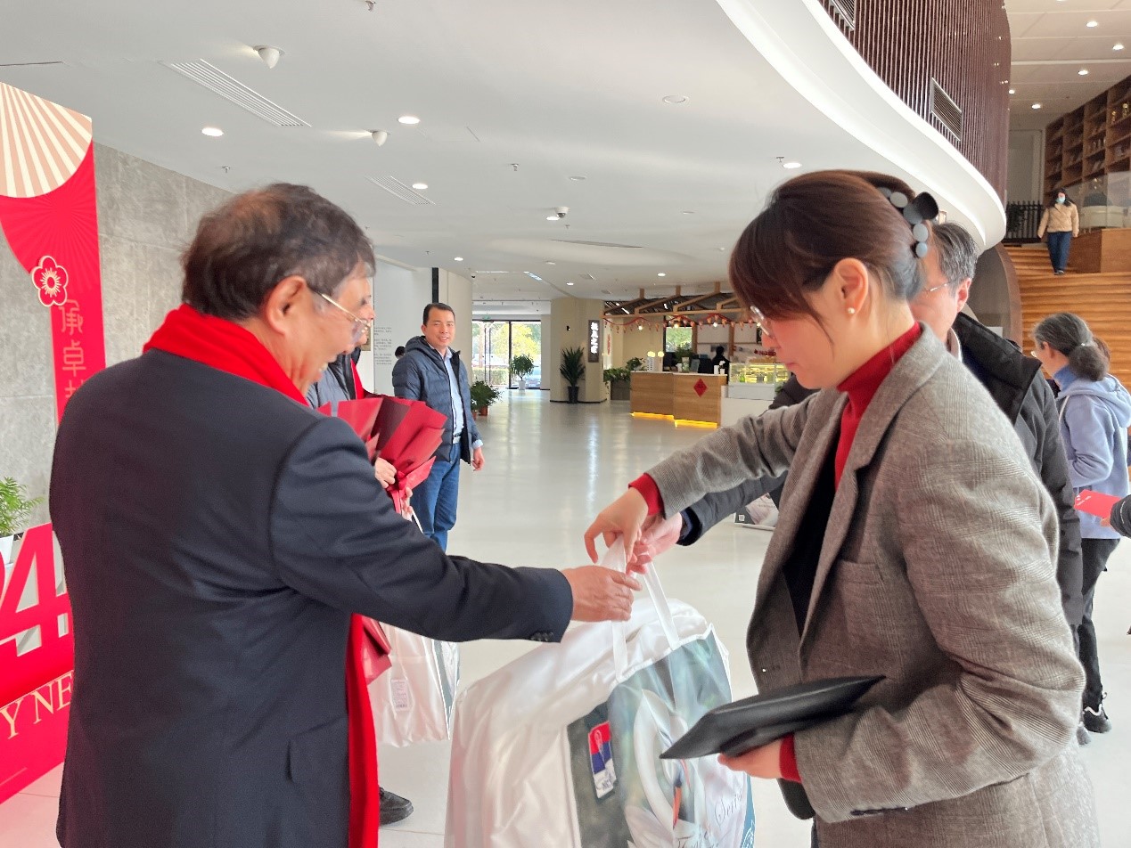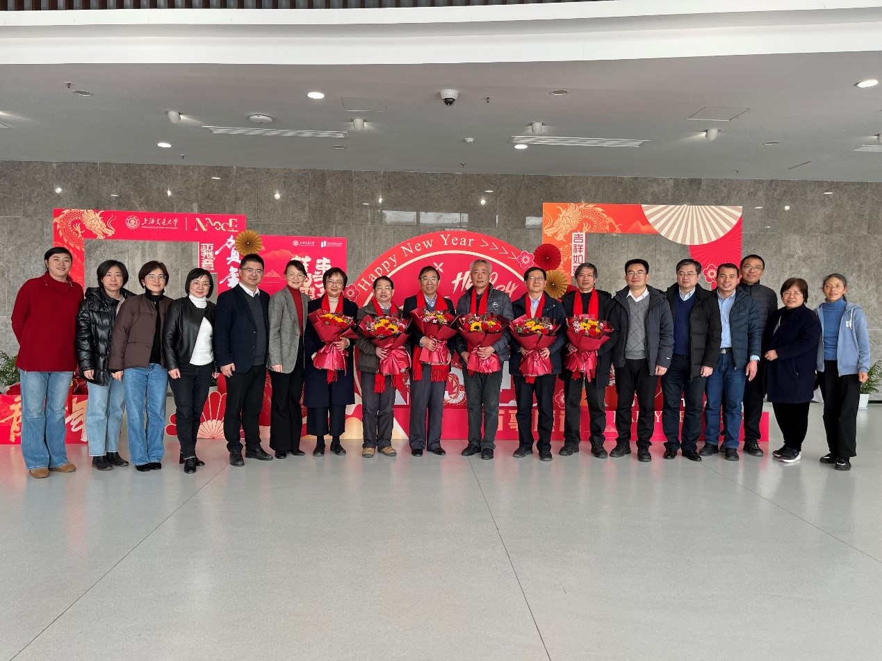 交流会最后周薇、薛鸿祥、刘铸永等代表萝莉社 向荣休教师提前致以新春祝福并颁发鲜花和纪念品合影留念。