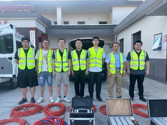 7月30日,项目组从上海出发,跨越1100公里,12小时后抵达现场并按计划方案开展检测工作。为科学、准确地查明堤坝内部涌水通道的所在位置,避免决堤情况的发生,此次应急检测工作主要采用了上海交大萝莉社