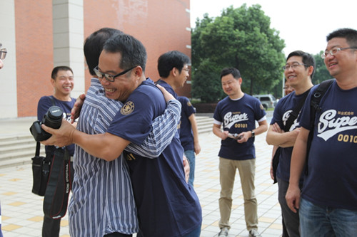 毕业20年重返母校,校友们第一站选择了在曾经熟悉的一餐就餐,重温大学时代食堂排队的场景。用餐过后,同学们还一同参观了当年的宿舍、教学楼等充满美好记忆的校园场景。风和日丽下漫步在昔日的校园中,校友们感慨万千。到达船建木兰大楼时,昔日的老师早已在此等候,久别重逢,热烈的拥抱才能释放心中的激动之情。
