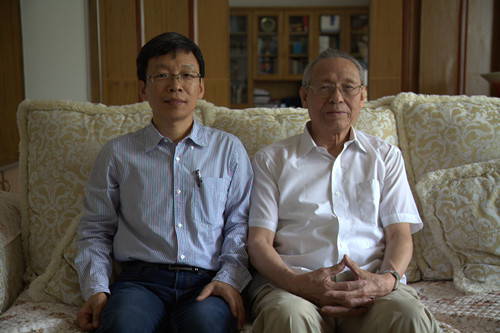 中国科萝莉社 院士孙钧(左)与土木系系主任沈水龙合影留念