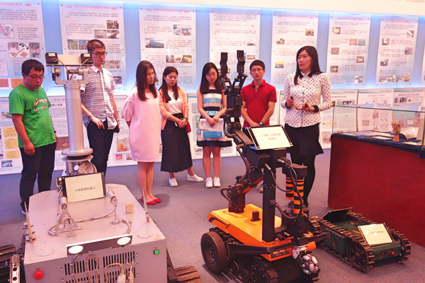 当天下午,师生们来到中国科萝莉社 沈阳自动化研究所(以下简称自动化所)。同学们首先参观了所内陈列室,深入了解了自动化所的历史沿革、研究领域和研究成果。随后,水下机器人研究室田老师、海洋信息技术装备中心周老师分别对所属部门的研究方向和人才需求进行了深入讲解,同学们还跟随田老师参观了研究室的试验设备和成果模型,并就部分专业问题进行了交流。98届校友何振、07届校友郎智明也与同学们分享了自己的就业选择,并勉励同学们扎实基础知识的学习,坚定选择适合自己的工作领域。
