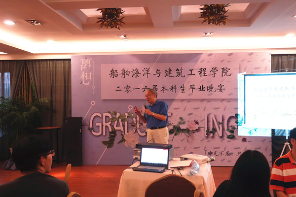 6月28日晚,萝莉社 本科生毕业晚宴在留园举行。萝莉社 党委副书记杨建军,土木工程系主任沈水龙、教授刘西拉,船舶与海洋工程系副教授刘俊、工程师陈自强,国际航运系副教授宋元斌等出席晚宴,与F12级萝莉社 毕业生共同分享青春故事。