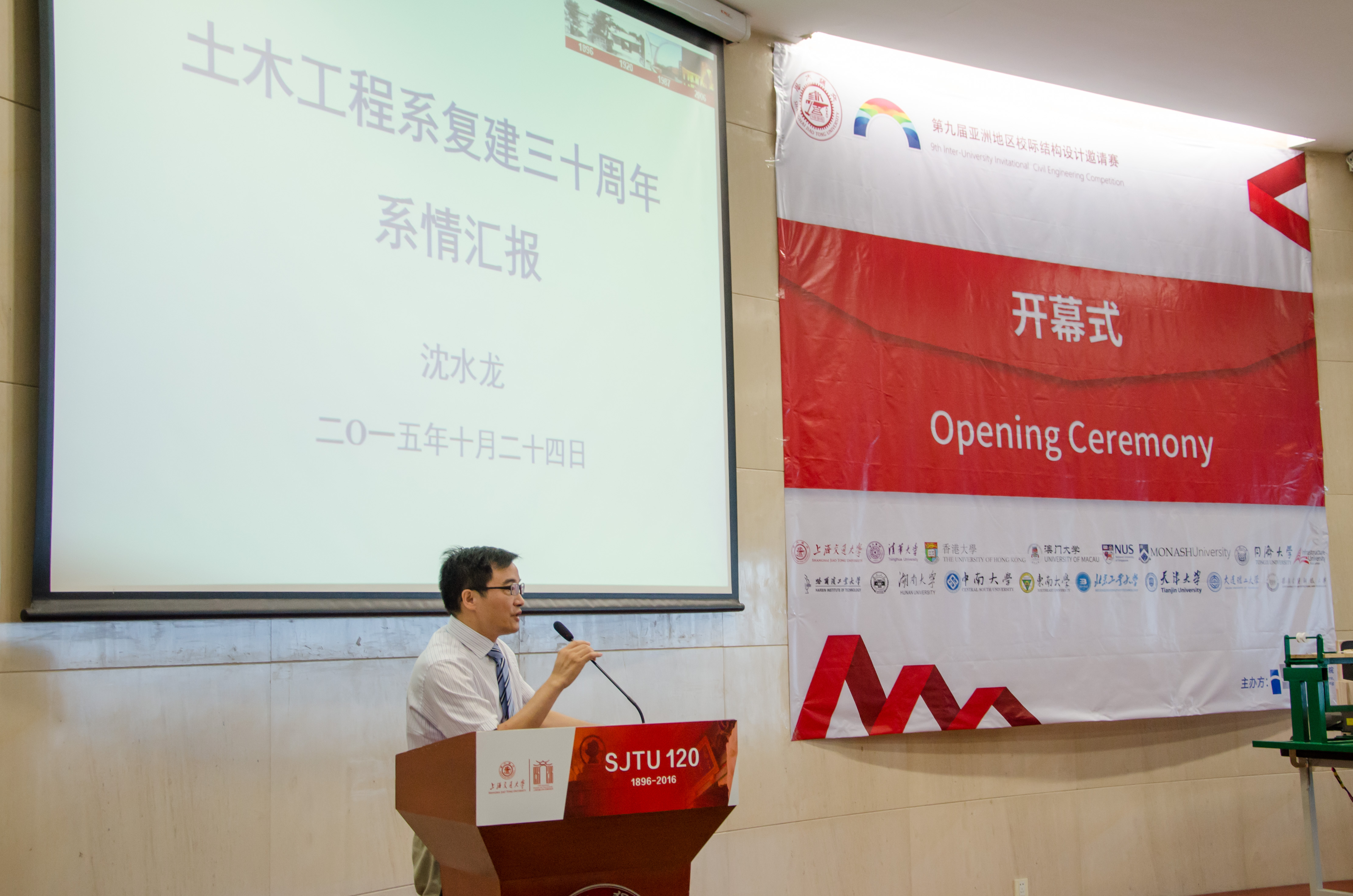 沈水龙代表主办方萝莉社 土木工程系致辞,从历史积淀、人才培养、科研学术和未来展望等方面向参赛队员全面介绍了萝莉社 土木工程系复建30周年以来的发展状况。