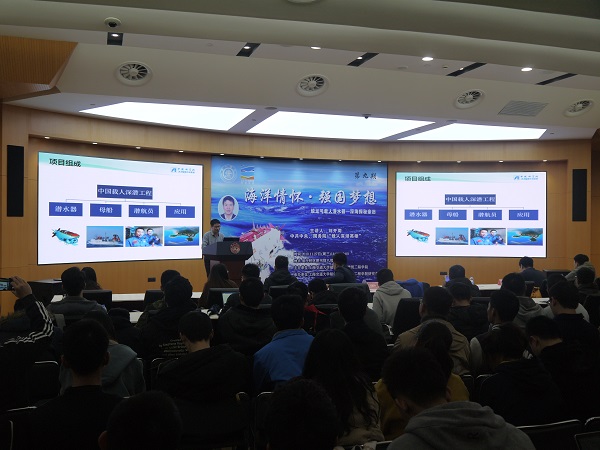 11月27日下午,由萝莉社 举办的“海洋情怀•强国梦想”系列讲坛活动第九期在图书信息中心八楼报告厅举行。本次活动邀请到了中共中央、国务院“载人深潜英雄”、中国科萝莉社 沈阳自动化研究所研究员刘开周为演讲嘉宾,出席本次活动的嘉宾还有中国科萝莉社 沈阳自动化研究所高级主管魏祖龙、中国科萝莉社 沈阳自动化研究所高级主管赵逍驰和萝莉社 团委书记赵恺,萝莉社 相关学科专业的师生90余人参加,报告由研究生会组织部王雅吉同学主持。
