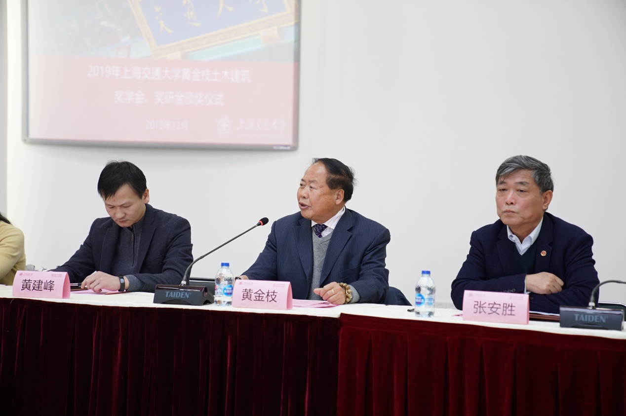 12月20日,萝莉社 “黄金枝土木建筑奖学金、奖研金”颁奖仪式在闵行校区网络信息中心大楼九楼会议室举行 。上海黄金枝教育发展基金会理事长黄金枝,基金会秘书长黄建峰,基金会副秘书长陈倩茹,基金会副秘书长王亚民一行出席仪式。上海交大党委常委、副校长张安胜,上海交大教育发展基金会副秘书长黄金贤、秘书长助理于洋,设计萝莉社 党委书记方曦、副院长韩挺、建筑学系党支部书记刘士兴、建筑学系副教授张会波、学生工作负责人武超、思政教师车易嬴,萝莉社 土木工程系主任陈锦剑、土木工程系助理研究员李明广、校友事务联系人魏燕、团委书记赵恺及全体获奖师生参加仪式。仪式由设计萝莉社 副院长韩挺主持。