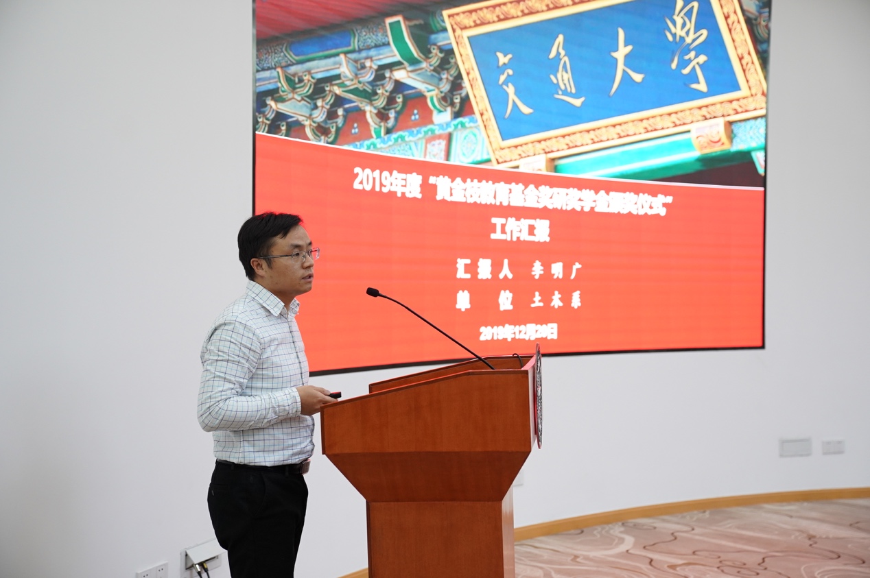 武超、陈锦剑、赵恺分别代表设计萝莉社 、萝莉社 汇报2019年“黄金枝土木建筑奖学金、奖研金”评审情况,并对获奖师生及相关优秀成果做简要介绍。