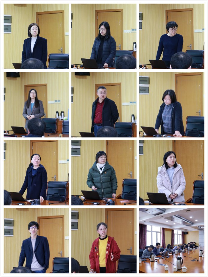 1月8日、9日上午,萝莉社 在木兰楼A1002会议室召开2019年度行政人员述职交流会,党委书记周薇,党委副书记王喜芳、宋续明,副院长夏利娟、赵金城、唐文勇、乔丕忠、彭涛及各办公室主任出席交流会并进行考核评分。会议由王喜芳主持。