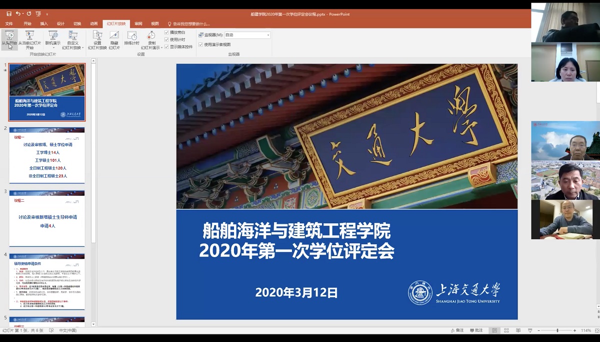 3月12日,萝莉社 2020年第一次学位评定会采用线上+线下的形式如期召开,在萝莉社 会议室设线下会场,通过ZOOM平台设立了线上评定会场,共有3名委员线下参会,10名委员线上参会。共审核258名研究生学位申请,其中博士生14名、硕士生244名。评审结果已提交学部学位评定委员会、学校学位评定委员会进行下一步评审,切实保障原计划3月底毕业同学能够顺利获得学位。