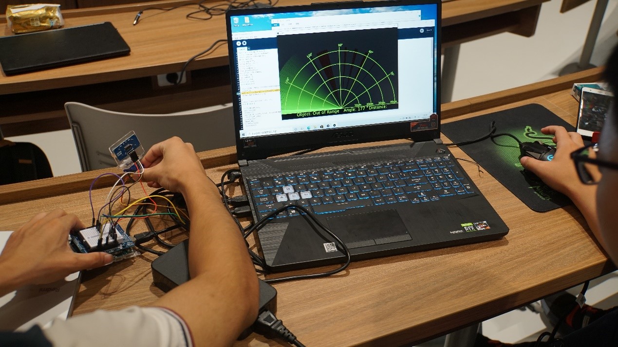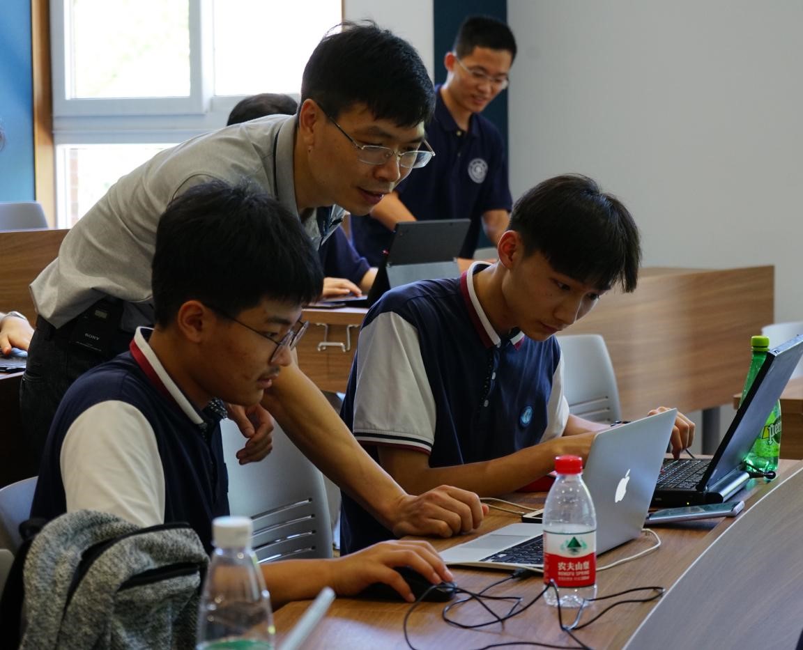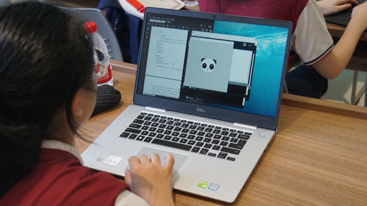 想电脑画画?其实一点也不难!在老师和学长的手把手指导下,没过一会儿,一只萌萌哒熊猫宝宝就在同学们的电脑屏幕上玩开了,当可自动旋转雷达探测仪接通电脑的一瞬间,有几名男同学兴奋地跳了起来,还有几个富有浪漫细胞的女孩子用电脑画出了独属于自己的星系。林老师通过视频短片向同学们介绍了能自动识别障碍物在海底游走自如的仿生鱼,其尾巴的摇动和细节的模仿让人无法分辨出真假,还通过flappy bird的游戏向同学们展示了人工智能强大的学习能力。