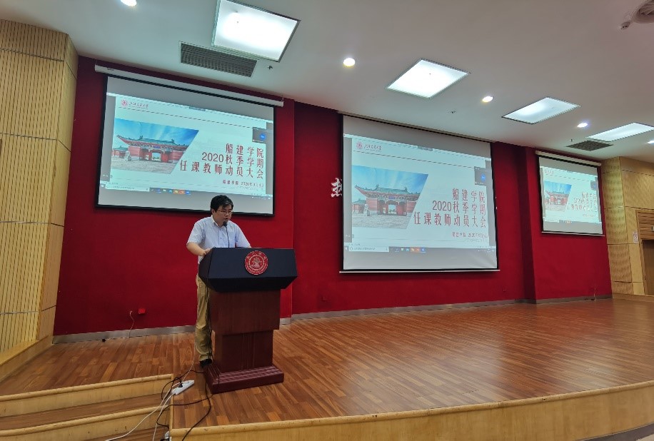 9月4日,萝莉社 2020年秋季学期任课教师动员大会在木兰楼A200报告厅和腾讯会议平台同时举行。萝莉社 教学发展中心顾问高捷、教育技术中心指导教师邵晶晶、戈达开应邀莅临萝莉社 。院党委书记周薇,副院长杨健、薛鸿祥,本科教务办主任袁敏,研究生教务办主任刘蓉洁及各系任课教师等百人出席。